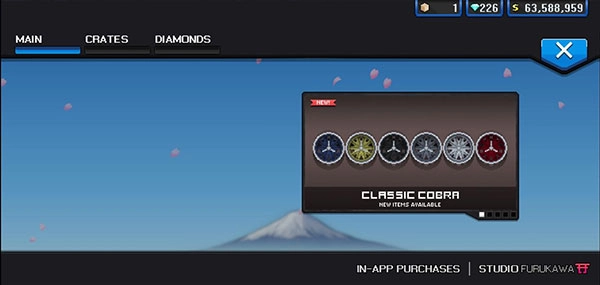 5、目前僅更新了一款新的鉆石渦輪,其性能與黑金渦輪相同,只是重量略輕。另外,之前版本中購買過“(no ads)”的玩家,這款渦輪會呈現(xiàn)紅色外觀,但現(xiàn)在已無法購買,算是對氪金玩家的一種補償。