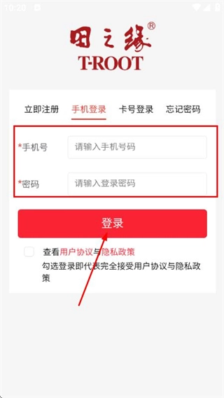 3、于登錄頁面輸入手機(jī)號(hào)與密碼,勾選相關(guān)協(xié)議后,點(diǎn)擊登錄按鈕以完成賬號(hào)登錄流程。