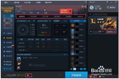 4、點(diǎn)擊這個(gè)游戲圖標(biāo),會(huì)進(jìn)入當(dāng)前賬號(hào)的所在服,里面的一些信息就顯示在軟件界面。如近期的對(duì)戰(zhàn)信息等。