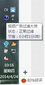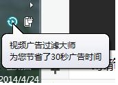 在任務(wù)欄顯示“視頻廣告過濾大師”的后臺圖標(biāo),把鼠標(biāo)移到上邊會顯示其狀態(tài)信息。