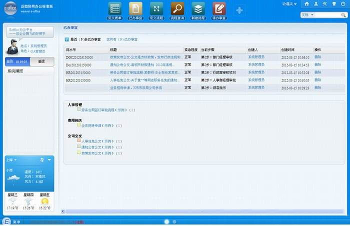 1. 門戶管理:自定義建立多門戶,使得員工與領(lǐng)導(dǎo)信息獲取更加簡(jiǎn)便、準(zhǔn)確、全面;2. 流程管理:有效貫徹企業(yè)內(nèi)部管控流程,將企業(yè)內(nèi)部常用表單電子化到系統(tǒng)中,真正實(shí)現(xiàn)流程管控;