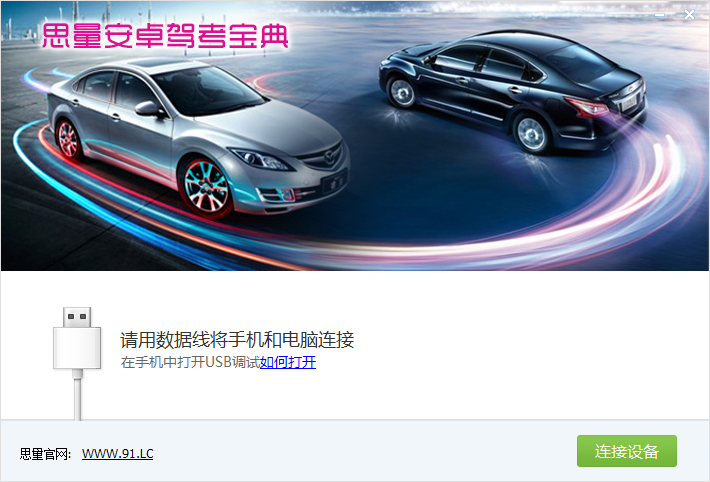 1、先啟動本軟件,提示您需要“用數(shù)據(jù)線將手機和電腦連接,在手機中打開USB調(diào)試如何打開”,點擊“連接設(shè)備”按鈕。