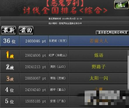 依據(jù)討伐惡鬼羅剎所獲得的討伐點數(shù)排名。
