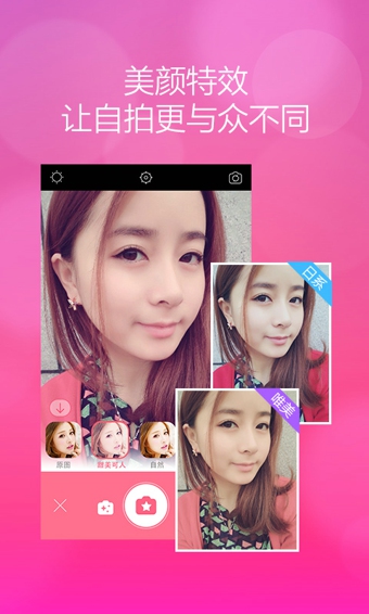 7、美顏特效:獨(dú)家研發(fā)的多款細(xì)膩的人像特效,瞬間滲透,快速擁有驚艷面容;