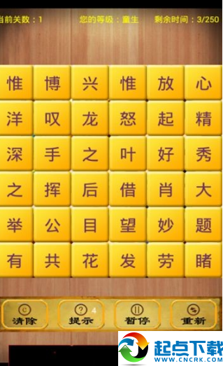 《成語消除》是一款超級(jí)好玩,寓教于樂的文字益智游戲。你只要按順序選中一個(gè)成語的四個(gè)方塊,這些方塊就會(huì)消除。美麗的界面,簡(jiǎn)單易上手的操作,耐玩有趣的挑戰(zhàn),它絕對(duì)是你閑暇時(shí)候的好伴侶。游戲分為普通篇和困難篇,一共多達(dá)50關(guān),你需要在規(guī)定時(shí)間不斷挑戰(zhàn)你的漢語水平,準(zhǔn)備好了嗎?【游戲特色】