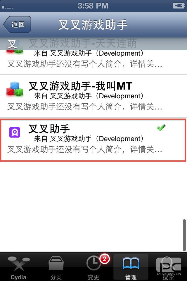 第二種方式:下載叉叉助手ios越獄安裝包(.deb)格式,下載完成之后用iFunbox或者iFile等pc端程序,將其拖到越獄手機(jī)的/var/root/Media/Cydia/AutoInstall目錄下,重啟手機(jī)即可自動安裝。