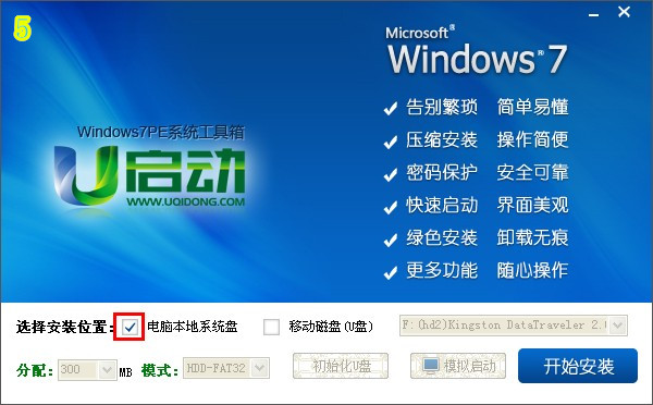 2、在選好安裝位置后,點(diǎn)擊開始安裝,在出現(xiàn)的提示窗口點(diǎn)擊確定安裝啟動盤;