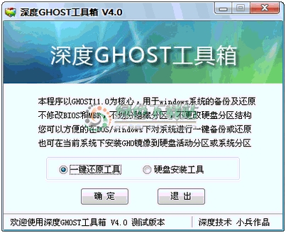 深度GHOST工具箱含有一鍵還原工具及硬盤安裝工具兩個組件,核心為GHOST11。DOS由GRUB引導(dǎo),可由GRUB從光驅(qū)啟動,含備份、還原、手動GHOST、DOS命令行。支持F32/NTFS分區(qū),支持多系統(tǒng)及系統(tǒng)不在活動分區(qū)、支持SATA硬盤、多硬盤,支持筆記本、品牌機,安裝GHOST鏡像時不會安裝到品牌機的隱藏分區(qū)內(nèi)。支持windows PE下操作,但由于無法加載虛擬光驅(qū)的驅(qū)動,此功能受限。