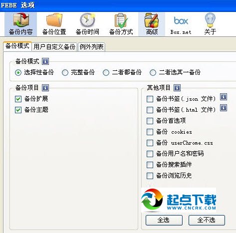 FEBE并不只是一個單純的備份/還原擴展哦。你甚至還可以把自己打包的xpi擴展程序分享給其他人,從而讓更多人了解你使用的擴展組合是多么的好用。當(dāng)還原時,利用FEBE圖標(biāo)中的“還原”子菜單項,依然可以有選擇性的還原備份文件中的個別資料,而不是像ghost一樣,只能夠生硬的備份和還原所有資料。【使用方法】