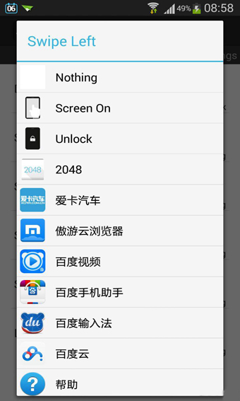 刷卡上,下,左,右:用戶可以設(shè)置每個(gè)滑動(dòng)以打開(kāi)一個(gè)單獨(dú)的應(yīng)用程序或解鎖屏幕(如果密碼已關(guān)閉)
