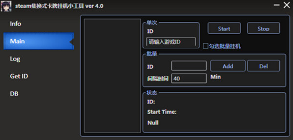 3、如果要使用批量掛機(jī),請(qǐng)先勾選啟用掛機(jī),然后依次添加游戲ID,再設(shè)置好切換時(shí)間,之后開(kāi)始掛機(jī)