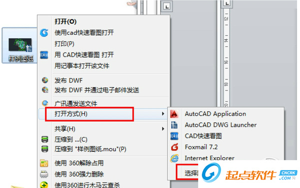 3、 右鍵點(diǎn)擊圖紙圖紙,選擇打開(kāi)方式,然后選擇默認(rèn)程序
