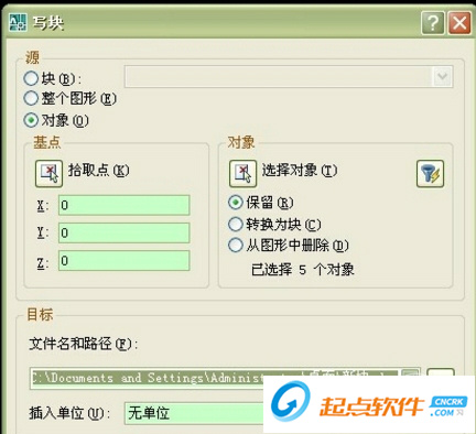 2、命令行輸入“w”彈出寫塊對(duì)話框。