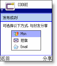 4、隨時隨地把手機中的內(nèi)容與好友通過MSN等方式分享給自己的好友,如即時照片、錄影,音樂等等一次完成。