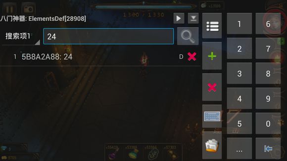 切回到八門(mén),新建搜索項(xiàng),輸入53386(上圖中防御符文數(shù)目),數(shù)據(jù)類(lèi)型Dword,搜索,得到一些結(jié)果。