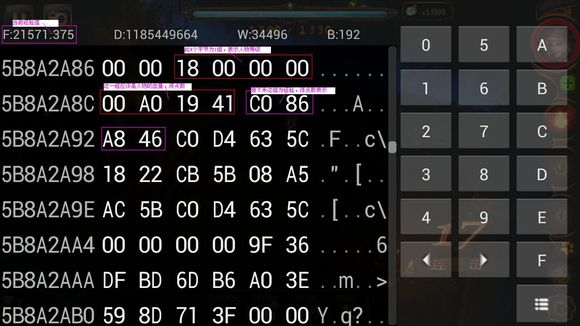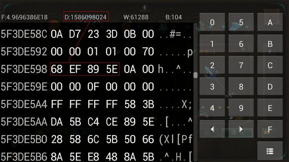返回八門(mén),新建搜索項(xiàng),輸入1586098024搜索,得到一些結(jié)果,依次對(duì)這些地址查看內(nèi)存,看看哪些是我們需要的,往上兩行就是金錢(qián)地址,金錢(qián)地址往上就是鉆石地址
