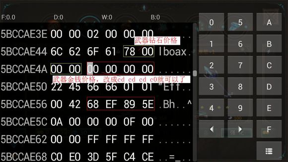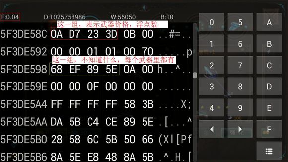 回到游戲,切換到藥品,再切換到武器,看看40000這個(gè)數(shù)據(jù)變成哪個(gè)值,(我的變成0.03999)