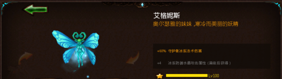 冰系寵物,會(huì)釋放冰錐術(shù),并根據(jù)與寵物的親密度帶來(lái)10%-60%冰系傷害加成。