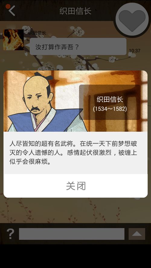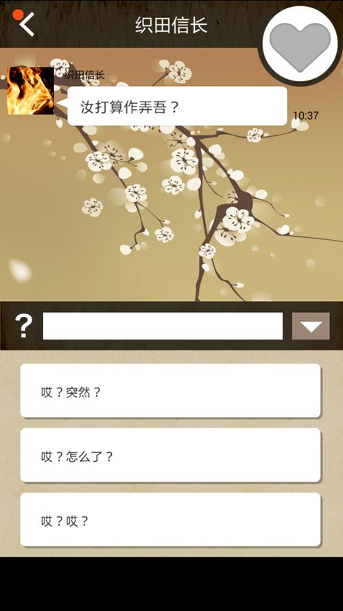 歷史上的請(qǐng)回短信漢化版顧名思義,游戲方法就是回短信。幸運(yùn)如后宮漫男主的你什么都不用做,一開始就能收到許多歷史名人的短信——織田信長(zhǎng)、圣德太子、宮本武藏,等等等等。這時(shí)會(huì)出現(xiàn)三種不同的回復(fù),從中選擇最恰當(dāng)?shù)囊环N就行了——從好到壞分別是粉心、藍(lán)心和骷髏。粉心加最多好感度,骷髏不加。一樣米養(yǎng)百樣人,不同人有不同性格,只要摸透他們的性格,攻略起來就不是難事(其實(shí)還是很難),這證明心如海底針的不止女人。除此之外,等回信也是件難熬的事,因?yàn)闀r(shí)間是隨機(jī)的,有時(shí)回你速度快得跟打雞血一樣,有時(shí)整天不回,這時(shí)你會(huì)發(fā)現(xiàn)石頭門里的閃光指壓師是多么可愛的存在。
