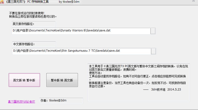 真三國(guó)無(wú)雙7猛將傳中英文存檔轉(zhuǎn)換工具 綠色版 軟件大?。?/span>1024KB