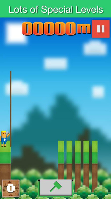 為我搭橋安卓版游戲玩法簡單,點擊錘子標記,橋會豎直伸長,估計兩座山之間的距離,松手,橋會倒下,在兩座山之間搭起一座橋。需要注意的是,橋太短,主角會掉落,橋太長,主角也會掉落。