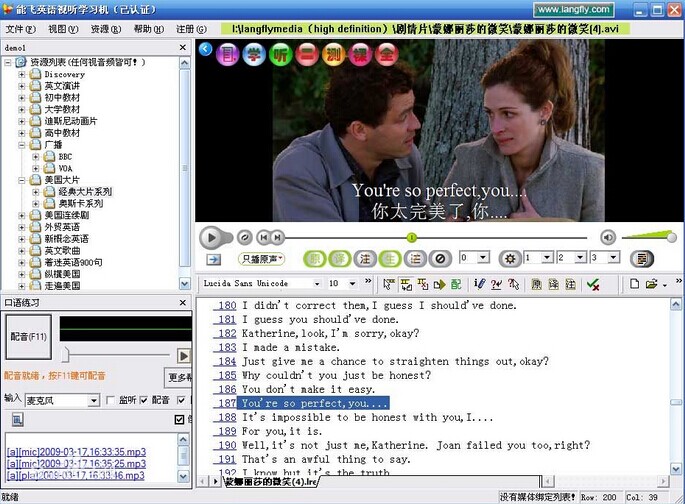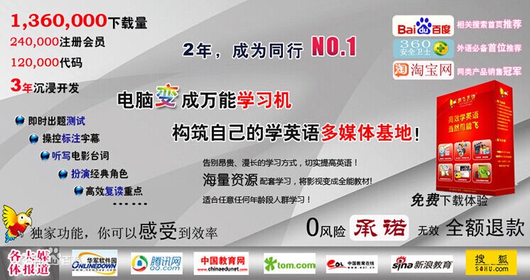 能飛英語(yǔ)學(xué)習(xí)軟件強(qiáng)力支持李陽(yáng)老師的瘋狂英語(yǔ)學(xué)習(xí)法,更是鐘道隆教授逆向英語(yǔ)學(xué)習(xí)法的最佳利器!聽(tīng)說(shuō)讀寫(xiě),樣樣可練習(xí),尤其練習(xí)聽(tīng)力,我們保證7天有感覺(jué),30天見(jiàn)成效!幫助你簡(jiǎn)單、快速、有效地學(xué)習(xí)地道的英語(yǔ),這是我們的目標(biāo)。想想看,經(jīng)過(guò)短時(shí)期的訓(xùn)練,你可以聽(tīng)懂老外的話了,你可以不看字幕就看通美國(guó)大片和熱播的電視劇了,那感覺(jué)真的很爽!