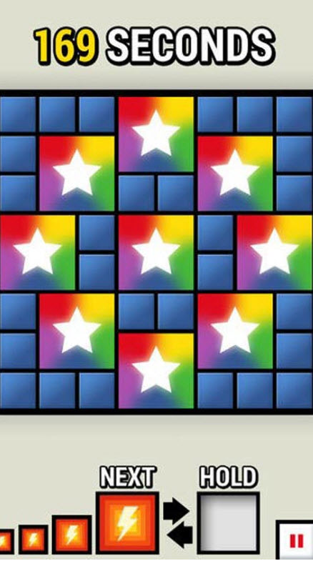 方塊介紹:星星方塊可以充當(dāng)任何顏色的方塊,當(dāng)身邊有三個(gè)相同顏色的方塊時(shí),它也會(huì)自動(dòng)融合成為一個(gè)大方塊,