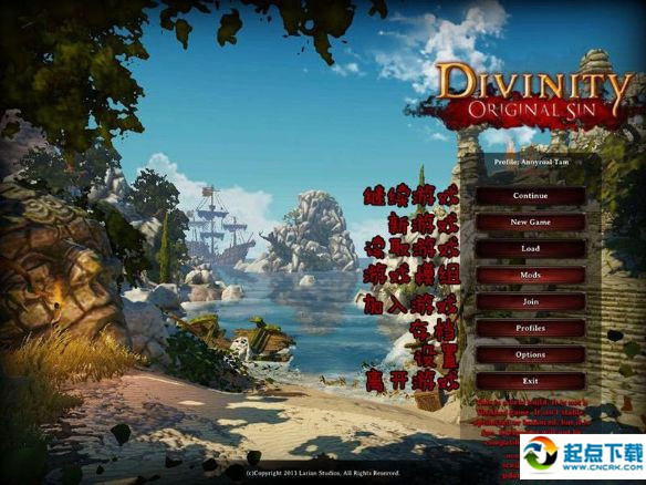 隨后就是進入到《神界3:原罪》的主菜單當中,第一項是“繼續(xù)游戲”(如果初次游戲,此位置為灰色,無法按動。以后進行游戲都從這兒進入)、第二項是“新游戲”(開啟新游戲都從這兒進入);