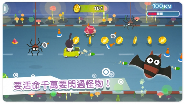 本作是一款跑酷游戲,游戲中的歐彼兔開車撞翻路上所有的烏龜,還要把握時間吃金幣、禮盒以及補(bǔ)充汽油,并且躲避路上層出不窮的怪物們,甚至有時候烏龜還會反過頭來攻擊歐彼兔。