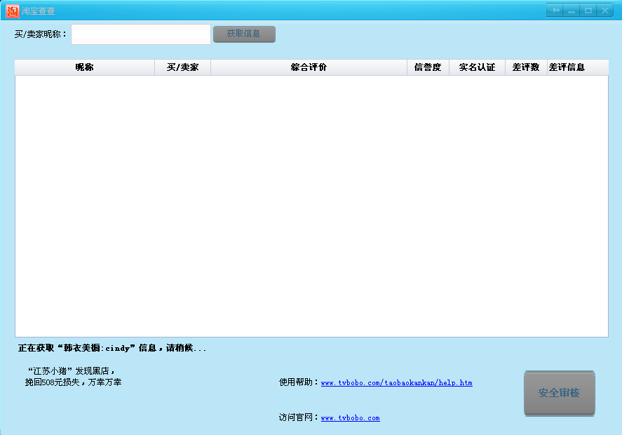 淘寶信譽(yù)度查詢軟件,可以快速對(duì)淘寶店鋪的信譽(yù)度、成交記錄、差評(píng)率等信息進(jìn)行查詢,以此來判別店鋪的可靠性。