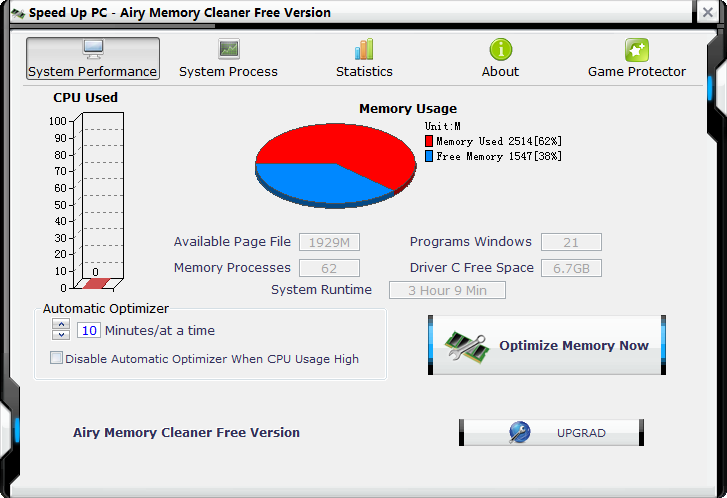 Airy Memory Cleaner(內(nèi)存清理工具)可進行一鍵優(yōu)化內(nèi)存,釋放物理內(nèi)存空間和提高計算機系統(tǒng)的性能,可以圖形格式顯示內(nèi)存使用情況和CPU使用率等當(dāng)前PC系統(tǒng)性能。Airy Memory Cleaner還可以查看當(dāng)前系統(tǒng)進程,優(yōu)化每個進程。Airy Memory Cleaner還會生成優(yōu)化統(tǒng)計報告 ,以圖形統(tǒng)計記錄每分鐘的內(nèi)存大小。