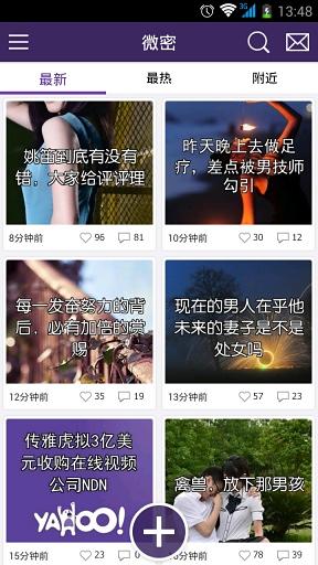 微密安卓版是一個有圖有真相的匿名分享社區(qū)。在這里,你不再有身份,沒有人知道你是誰,你不用偽裝,不用膽怯,生活上的煩惱、工作上的不順、壓抑已久的秘密...來微密吧,卸下生活中的面具,做回最真實(shí)的自己。