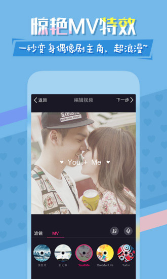 美拍憑借其特有的MV效果,讓每個(gè)人的生活都變成“大片”,一鍵式操作降低了大家的使用門檻,也提高了視頻編輯的效率。