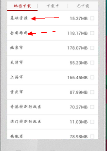 其中基礎(chǔ)資源包和全國(guó)路網(wǎng)屬于必須要下載的,然后選擇你所在的城市,需要導(dǎo)航的城市即可。
