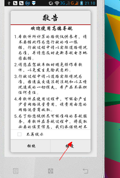 下載好了以后,我們?cè)诖蜷_的時(shí)候,首先都會(huì)有一個(gè)條款的,我們看一下之后,我么那就點(diǎn)擊接受,不接受的話,我們是無法使用的。