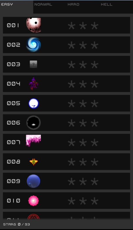 死亡彈幕安卓版:每一關都相當于其它飛行射擊游戲里的打boss,一共有easy、normal、hard和hell四個難度,特別是最后兩個難度簡直喪心病狂,滿屏的子彈無處可躲!不愧叫做“死亡彈幕”啊。