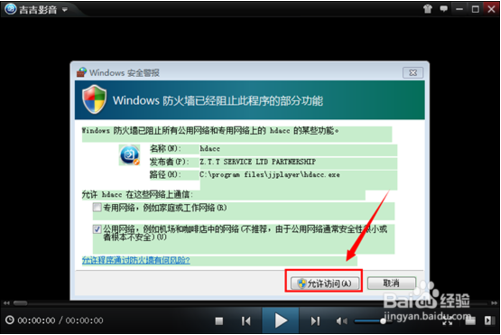 打開吉吉影音之后,設(shè)置防火墻,殺毒軟件排除例外讓吉吉影音可以聯(lián)網(wǎng)