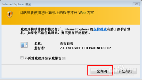 出現(xiàn)的吉吉影音插件一定要設(shè)置允許,并且勾選不再對此程序提醒警告