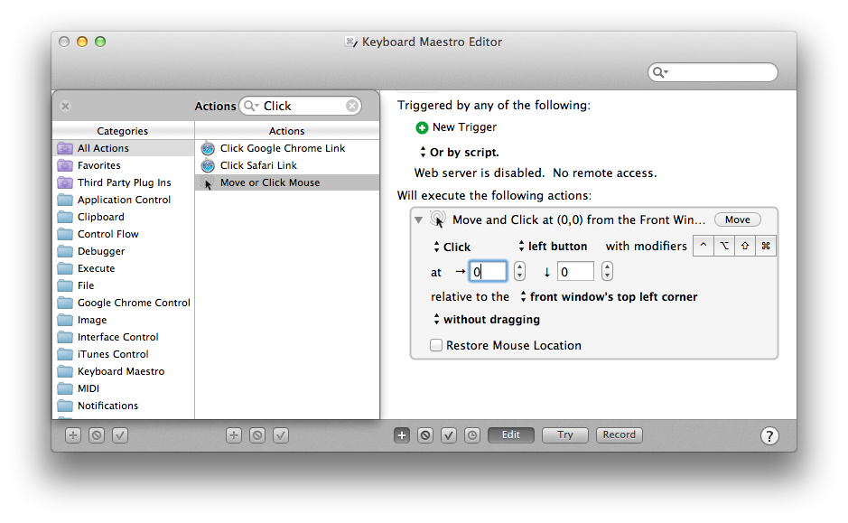 Keyboard Maestro的野心很大,支持的功能好像在業(yè)內(nèi)都能找到鉆營者,下面要說的窗口操縱功能的對(duì)手也很多,包括窗口縮放(百分比、像素),窗口移動(dòng),窗口居中,關(guān)閉,最小化等十余種動(dòng)作都可以在這里找到。