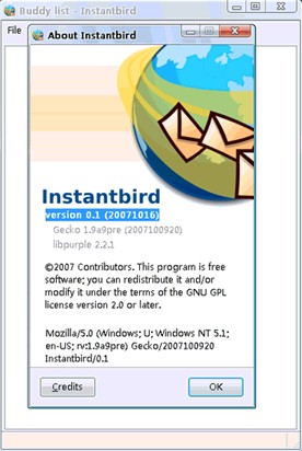 Mozilla Instantbird V0.2 Alpha 1 英文綠色免費版 基于Mozilla的即時消息工具,結(jié)合了兩大開源項目:Firefox瀏覽獨立引擎XULRunner和Pidgin的libpurple。當前版本0.1,僅具備非常基本的功能,有16種網(wǎng)絡libpurple支持,包括對QQ、MSN等