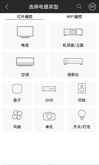 大多數(shù)紅外電器的遙控器可以直接通過匹配或者型號搜索的方式下載使用。個別未能使用的遙控器可以使用app的DIY功能添加遙控器。