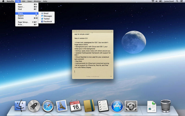 mac記事本 Notefile使用自帶的junecloud同步,所以如果要使用同步功能需要注冊(cè)一個(gè)junecloud帳號(hào)?;旧螻otefile能夠滿足一切最簡(jiǎn)單的記事本需求。另外如果你的需求不高的話,在Mac下也可以使用系統(tǒng)自帶的記事本,也能用iCloud和iOS同步。