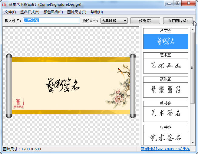 彗星一筆簽名設(shè)計(jì)是一款小巧免費(fèi)的藝術(shù)簽名設(shè)計(jì)軟件,好的簽名能讓人眼前一亮、印象深刻,而這款一筆簽名設(shè)計(jì)免費(fèi)版能提供合文簽,藝術(shù)簽,篆體簽,草書簽,行書簽,商務(wù)簽等多種簽名方式,非常給力。