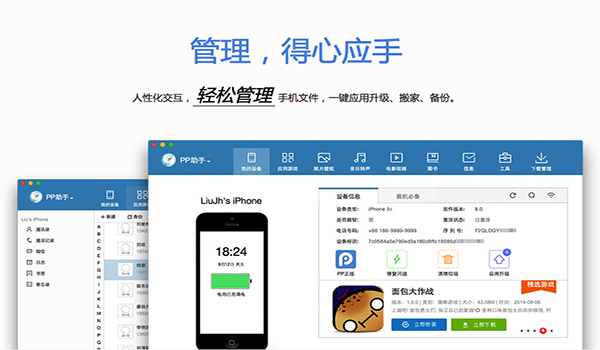 今天終于迎來了Mac版PP助手2.0更新,此次版本似乎是經(jīng)過重新設(shè)計,采用了現(xiàn)在比較流行的扁平化設(shè)計,非常簡潔清新,操作也相當(dāng)便捷。