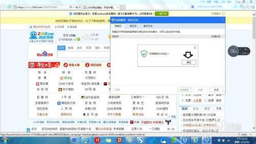 3.此時(shí)已經(jīng)顯示刪除成功了→確定。但是,這個(gè)電腦管家處理的只是一個(gè)快捷方式而已,并沒有處理掉它自己帶來的真正隱患,如要處理干凈,還要用戶自行處理。