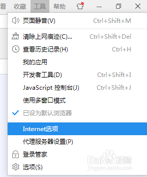 5.有兩個(gè)地方可以查看,一個(gè)是傳統(tǒng)的主頁被編輯過之后替換了。點(diǎn)擊右上方的齒輪狀按鈕(工具)→Internet 選項(xiàng)。