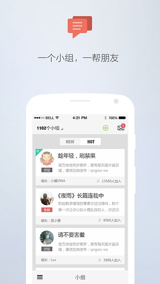 一個小組,一幫朋友禁果小組等你加入,尋找有趣的小伙伴一起碎節(jié)操吧!