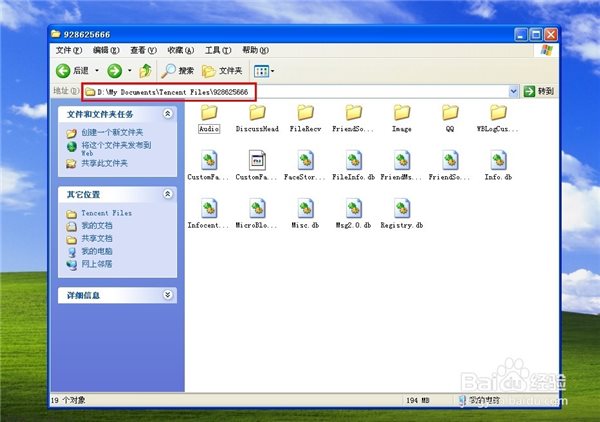 根據(jù)上圖可知,該qq聊天記錄儲存在D:\My Documents\Tencent Files\928625666文件夾下。如下圖: