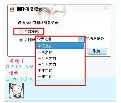 點擊刪除之后選擇要刪除聊天記錄的時間??梢赃x擇當(dāng)天的。也可以選擇全部刪除等。