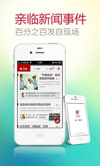 熱度——“無論你在哪里,真相都在這里”,中國最快最權(quán)威的現(xiàn)場報道一手掌握,小伙伴的目光都投向了哪里,緊跟潮流,想OUT也難!周邊——“離得越近,總是越關(guān)心”,根據(jù)你的位置搜索周邊的新聞,參與現(xiàn)場報道!